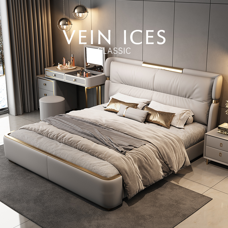 新款意式轻奢真皮床1.8米简约现代家用双人床2米储物大气软包婚床