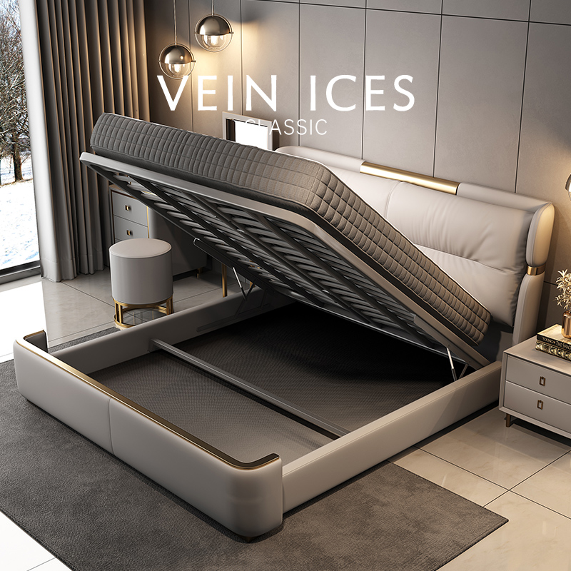 意式轻奢真皮床储物平移气压款储物双人床大黑熊软包床主卧结婚床