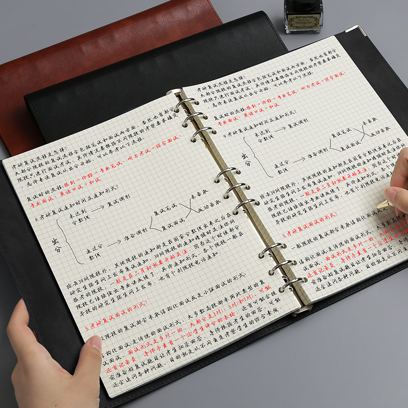 康奈尔思维导图本子a4软皮笔记本活页夹记事本b5可拆卸日记计划网格方格简约ins高颜值办公记录软面抄皮面本