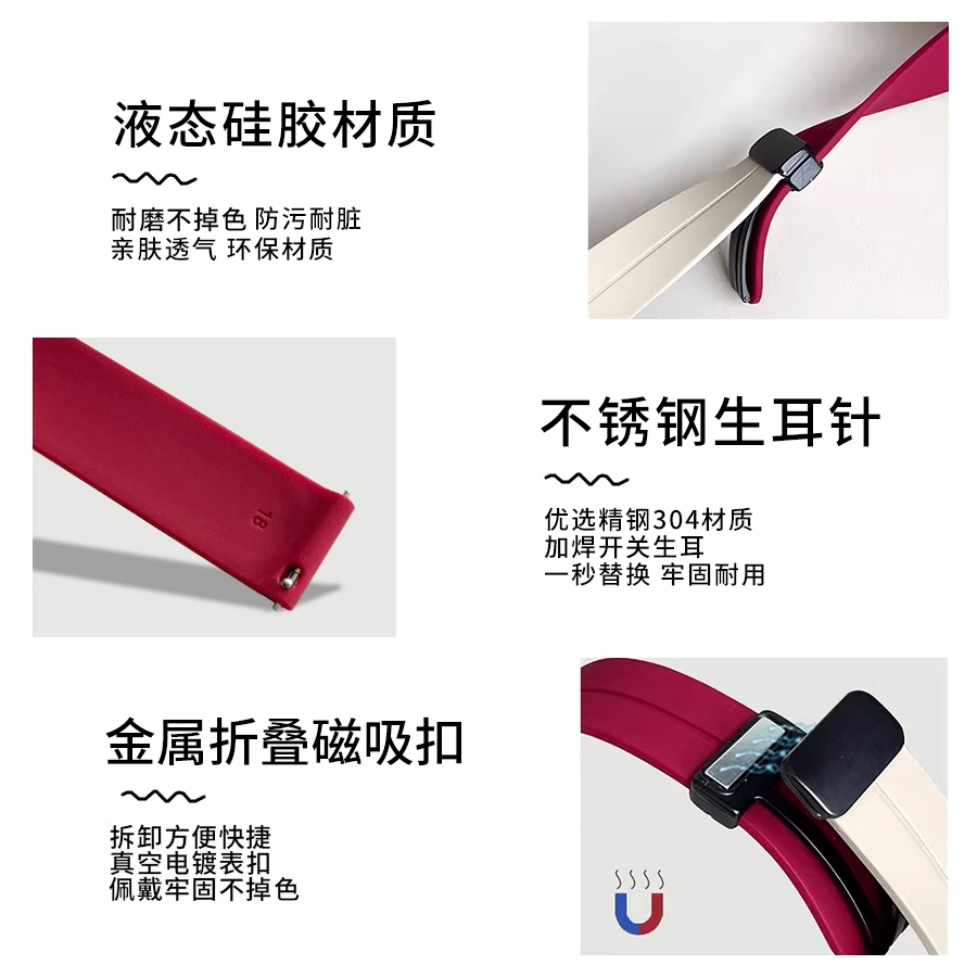 适用华为gt5/gt4表带夏天gt3硅胶磁吸智能运动手表链watch5手表带4pro女款gt2女表专用新款46/41mm女士腕表带