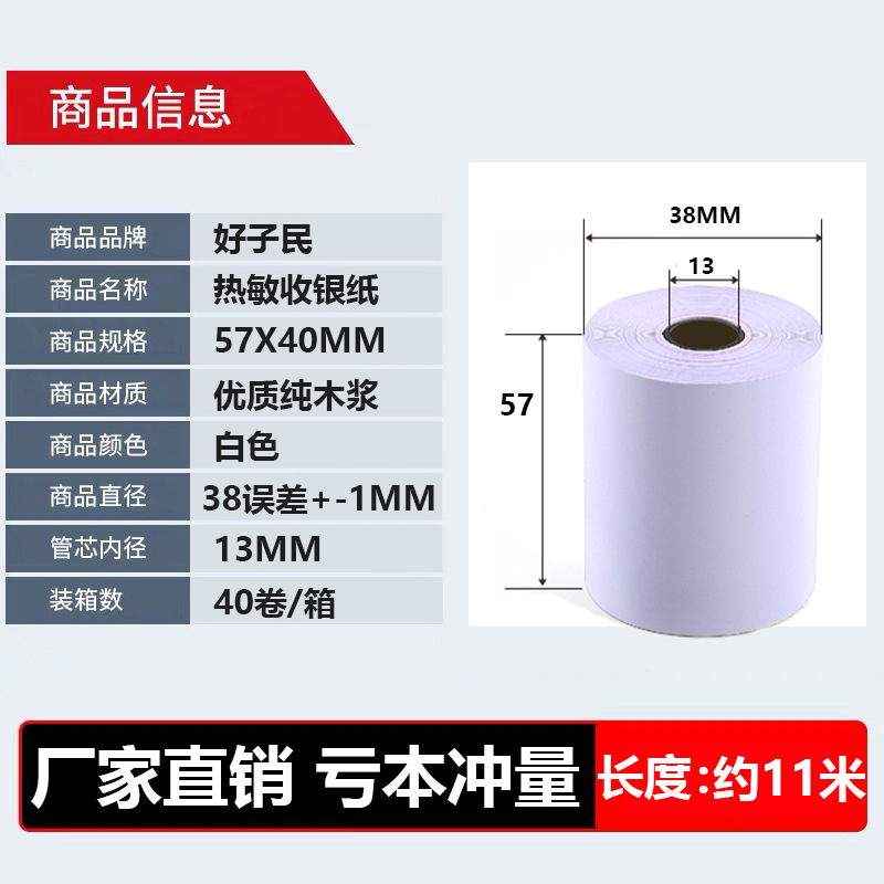 57*40热敏收银纸57x40饿了么美团外卖打印纸餐饮条码超市小票机