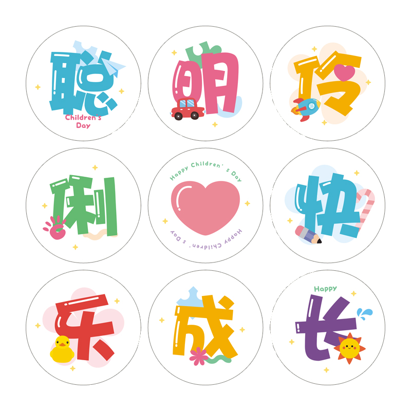 缤纷六一儿童节快乐贴纸祝福装饰饮料糖果零食不干胶贴贺卡封口贴