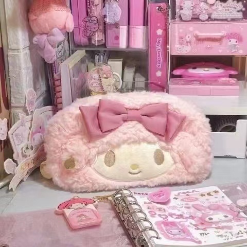 不要动我的三丽鸥库洛米笔袋女日系ins毛绒小羊大容量化妆文具袋