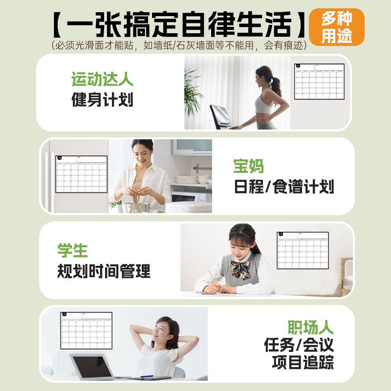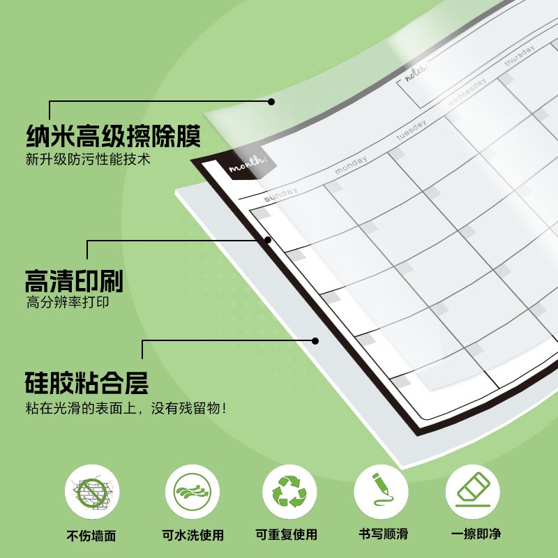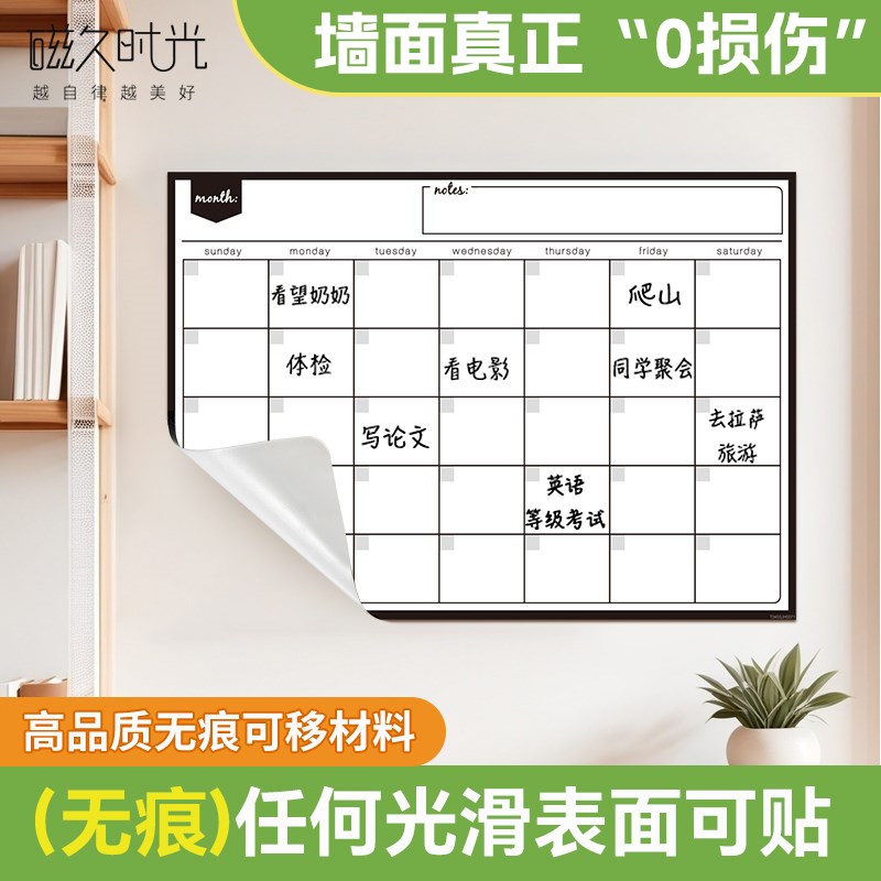热销硅胶计划表墙贴工作计划板白板自粘不伤墙日历时间管理计划表