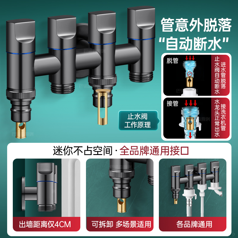 一进角阀四通洗衣机水龙头专用三出分水器分水阀家用加长自动滴水