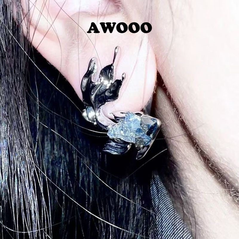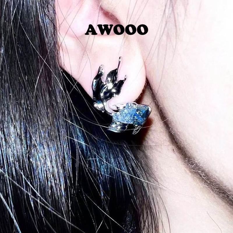 深海之息渐变蓝色小鱼晶石深海鱼海浪锆石项耳钉新款无耳洞耳夹