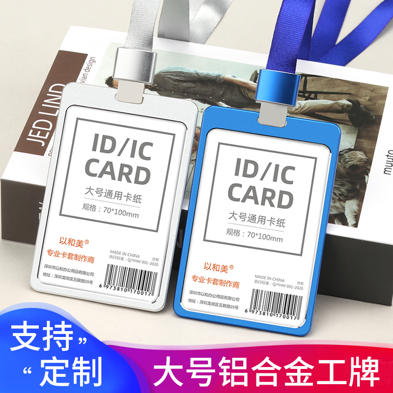 大号铝合金工牌卡套挂绳高档工作证员工厂牌金属工作牌蓝色证件套