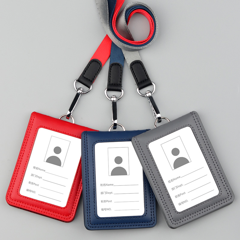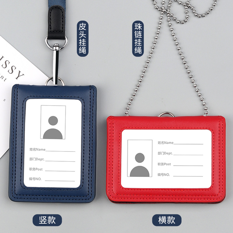真皮工牌卡套两卡位折叠胸牌保护套壳定制高档员工工作证胸卡挂牌