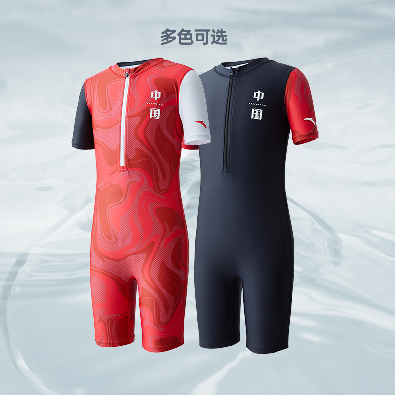 安踏儿童连体泳装男童防晒抗氯泳衣夏新游泳训练衣运动衣官方正品