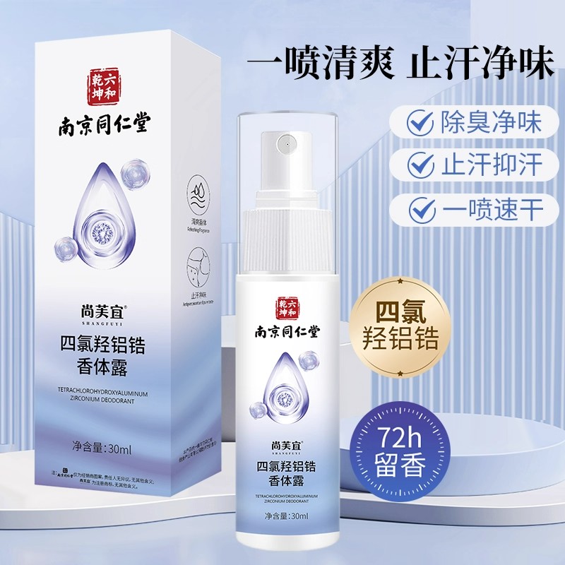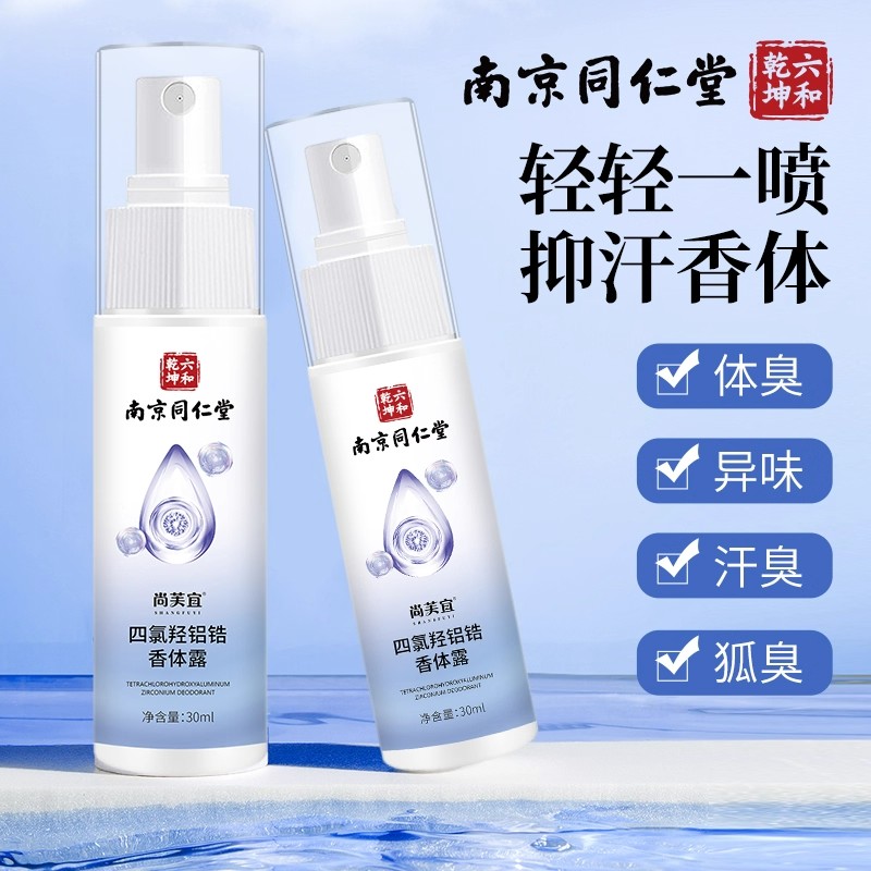 南京同仁堂四氯羟铝锆止汗露喷雾去狐味腋下窝臭去异净味水香体露