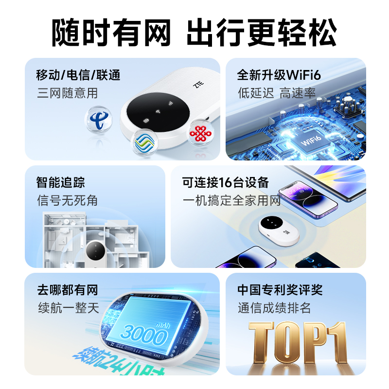 中兴随身无线移动wifi6官方旗舰店2025新款网络热点便携式纯流量4G上网宝无线网卡全国通用智能随身wifi1886