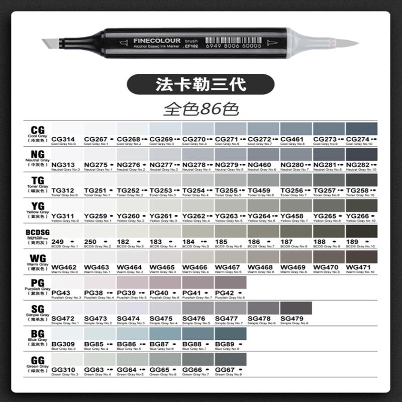 法卡勒马克笔灰色系套装一代二代三代初学者双头软头学生手绘动漫