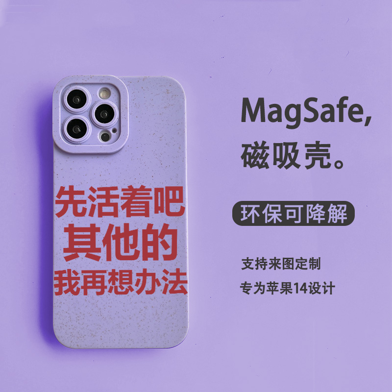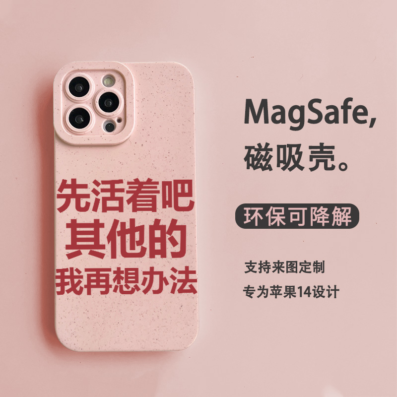 Magsafe磁吸手机壳先活着吧苹果14promax适用于iPhone13mini苹果12promax简约11pro男X文字14plus创意13pro女