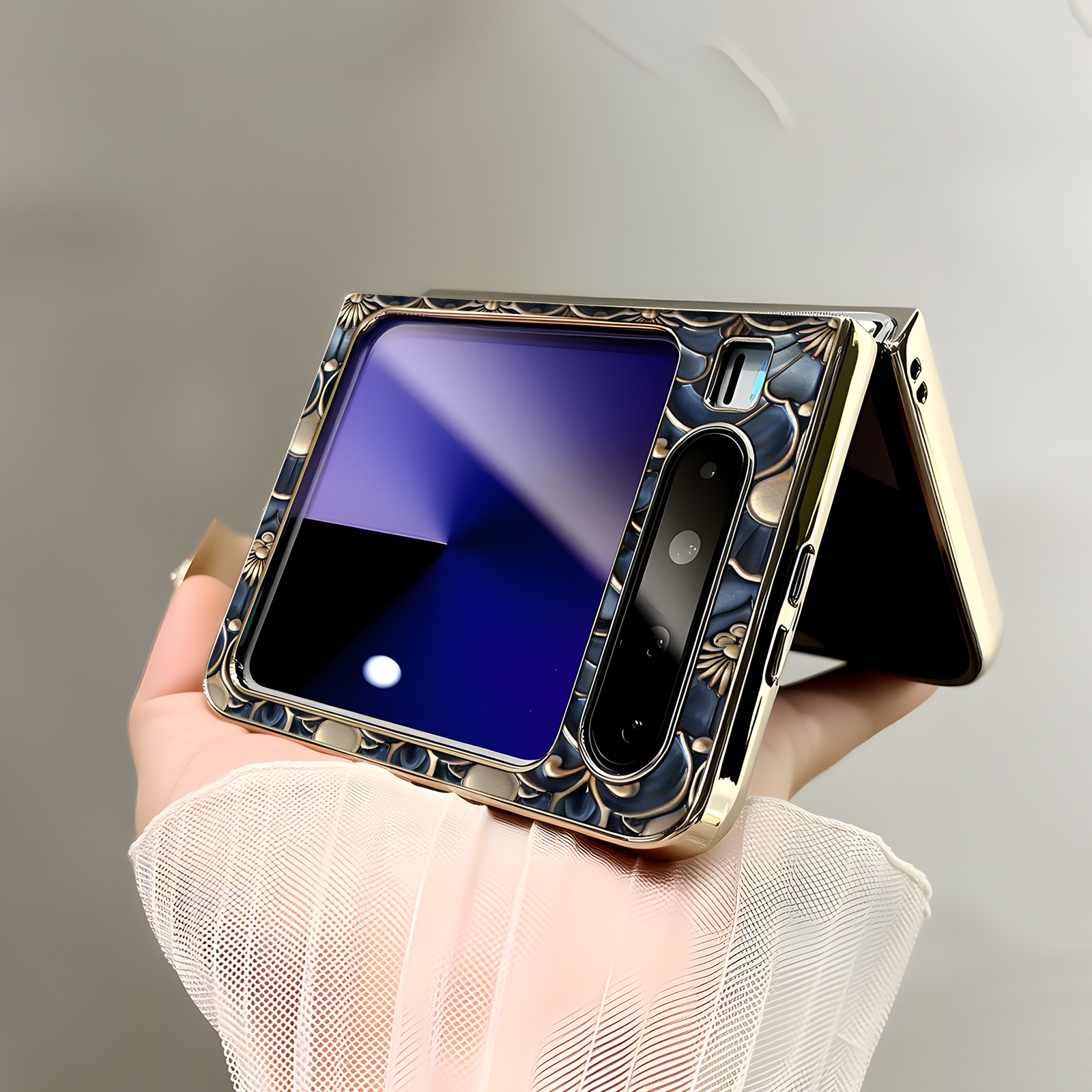 热瓜适用于华为PuraX手机壳新款高档电镀皮纹折叠屏保护套典藏版气质轻奢高级感全包防摔套视觉金边花朵皮纹
