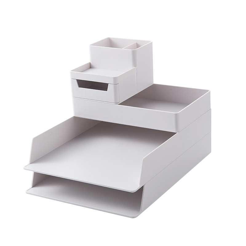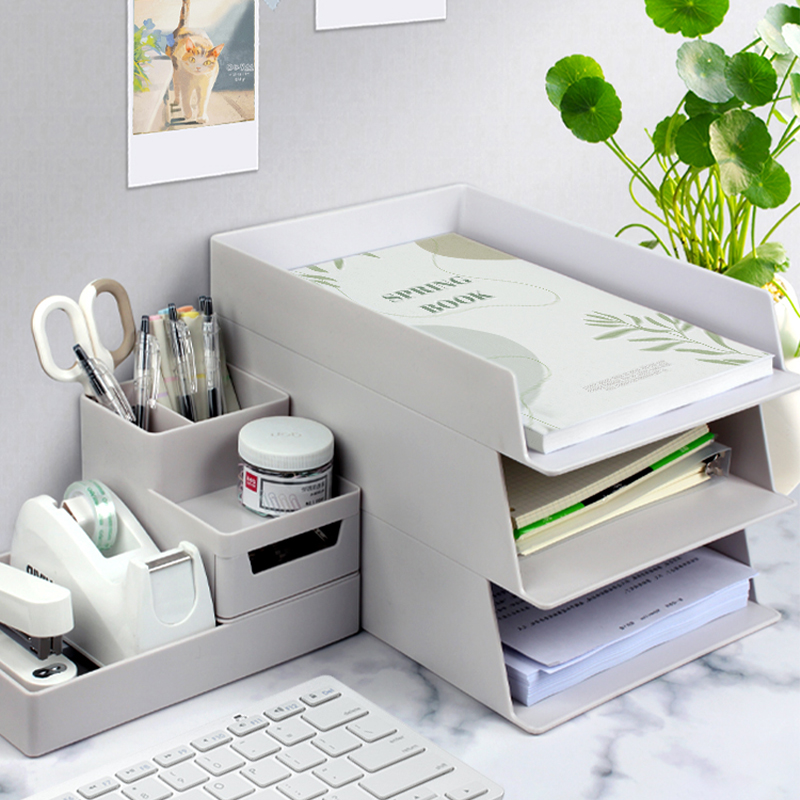 桌面收纳盒办公室台面文件A4置物架多功能笔筒办公桌工位整理神器可叠加收纳架文件座多层文件架文件框抽屉式