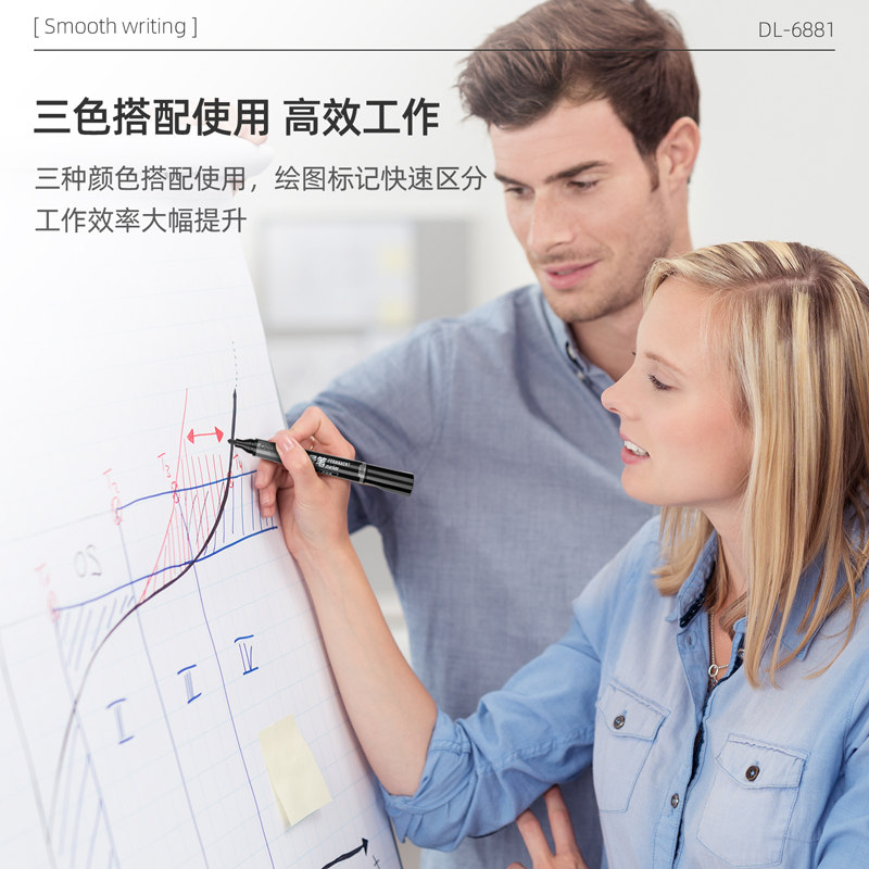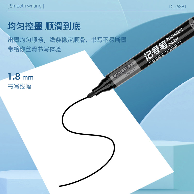 得力6881记号笔油性不掉色单头标记笔不可擦快递大头纤维笔头