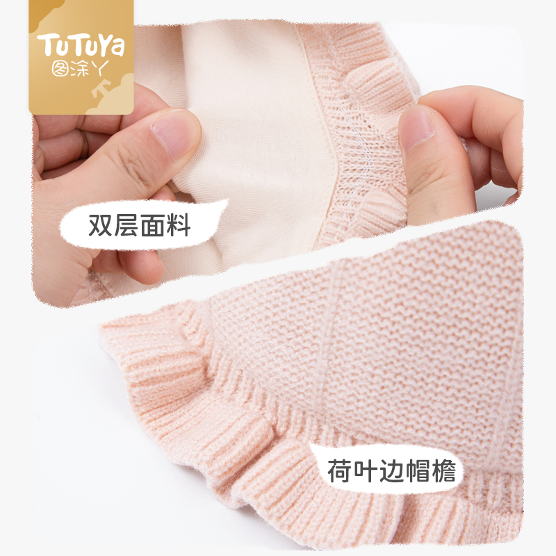 尼多熊宝宝帽子秋冬帽围一体儿童护耳帽保暖婴儿帽冬季加厚毛线帽