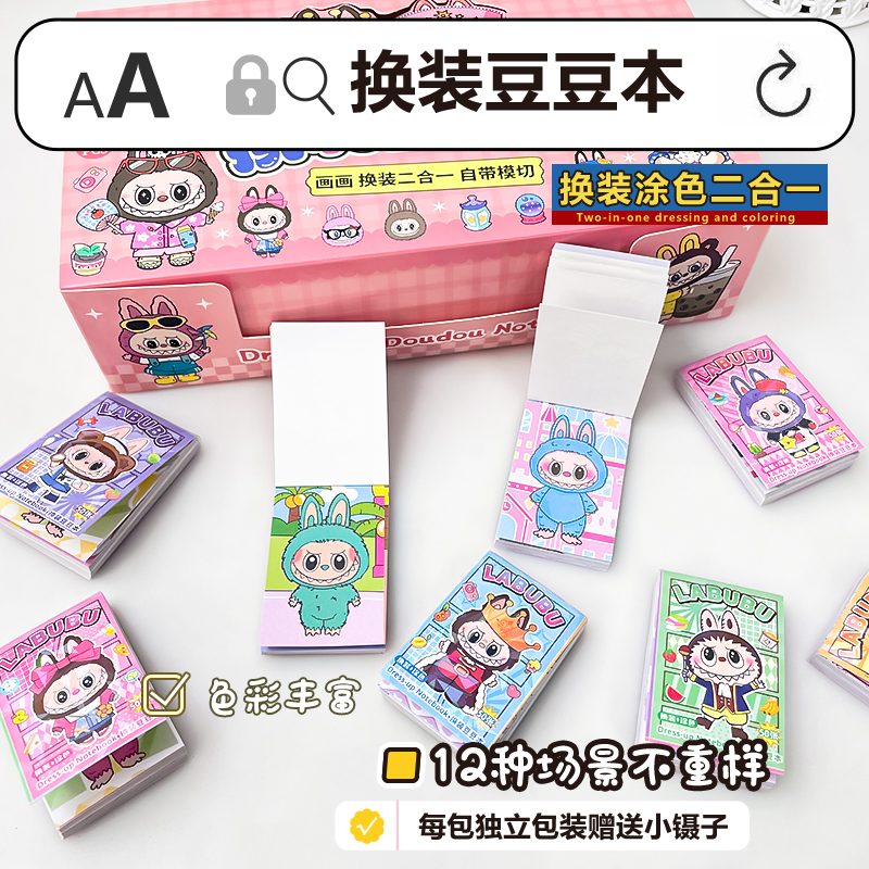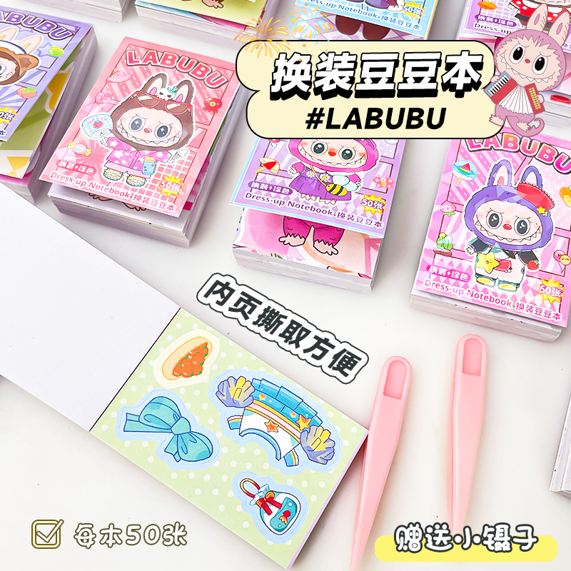 卡通拉布布豆豆本迷你新款可爱创意涂色本画画换装贴纸手帐本小学生粘贴画女孩手工diy玩具labubu杯子人物