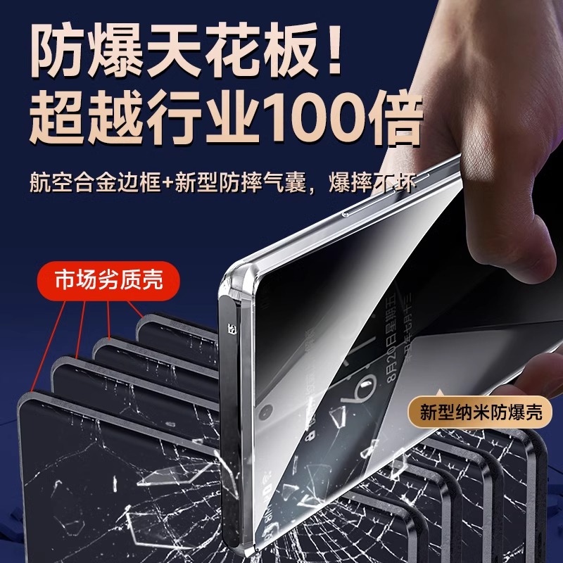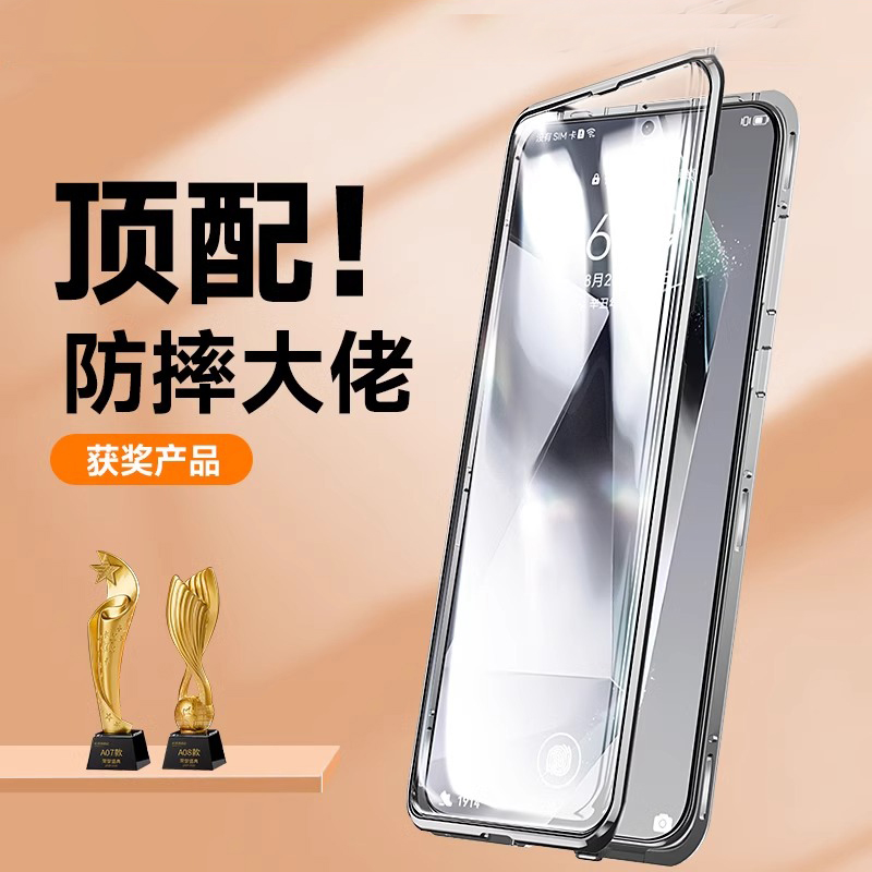 适用于三星s25ultra手机壳新款防偷窥双面玻璃磁吸GalaxyS25FE保护套透明前后全包壳S25+超薄防摔曲屏十金属