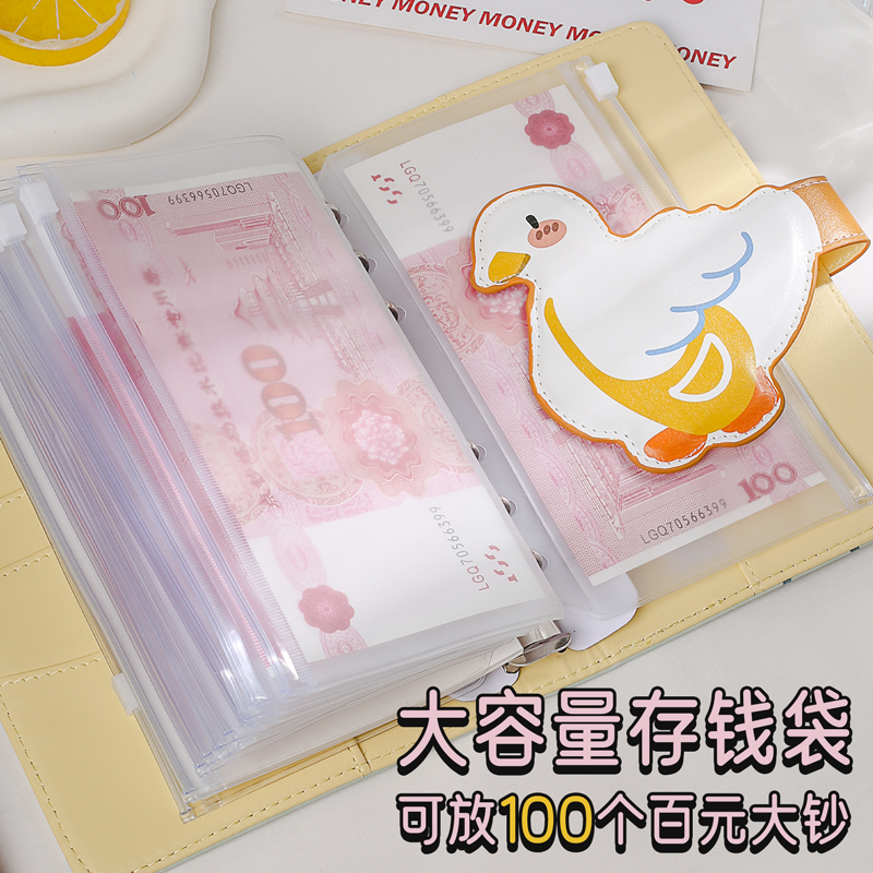 可爱卡通记账存钱本大容量存钱袋可放现金儿童小学生活页记账本家庭日常开销理财笔记本子2024年新款