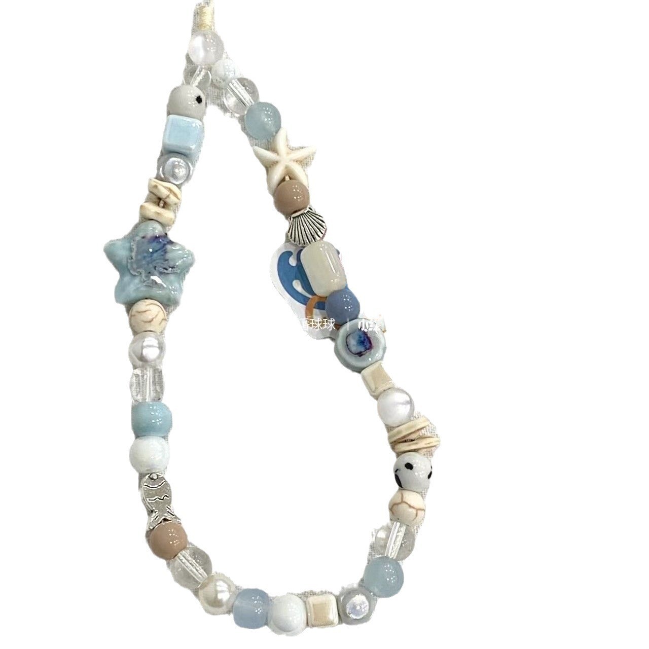 夏日海风蓝星星手机链条小清新ccd挂绳diy挂饰相机防丢绳蓝色系潮