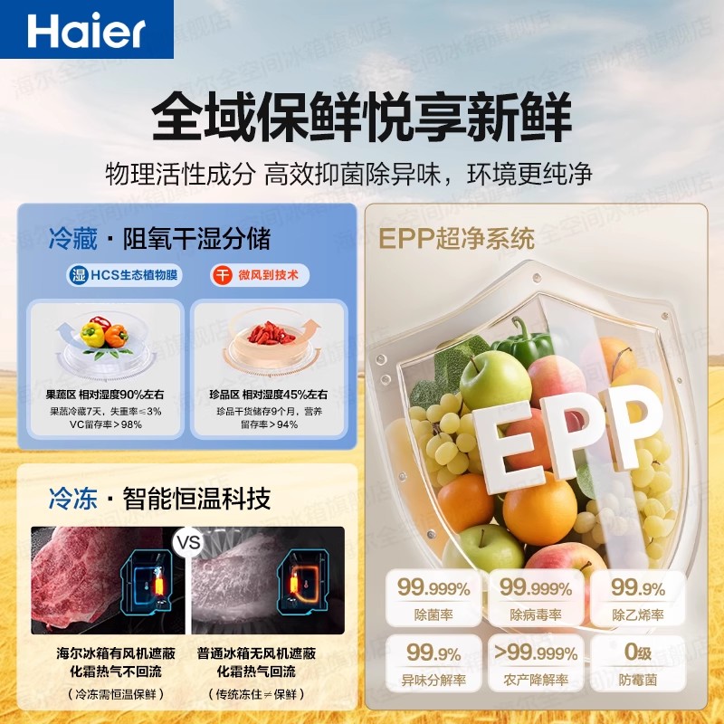 【李佳琦直播间美妆节】海尔539L双开四门一级能效电冰箱