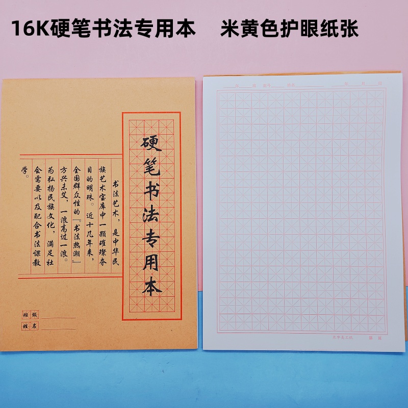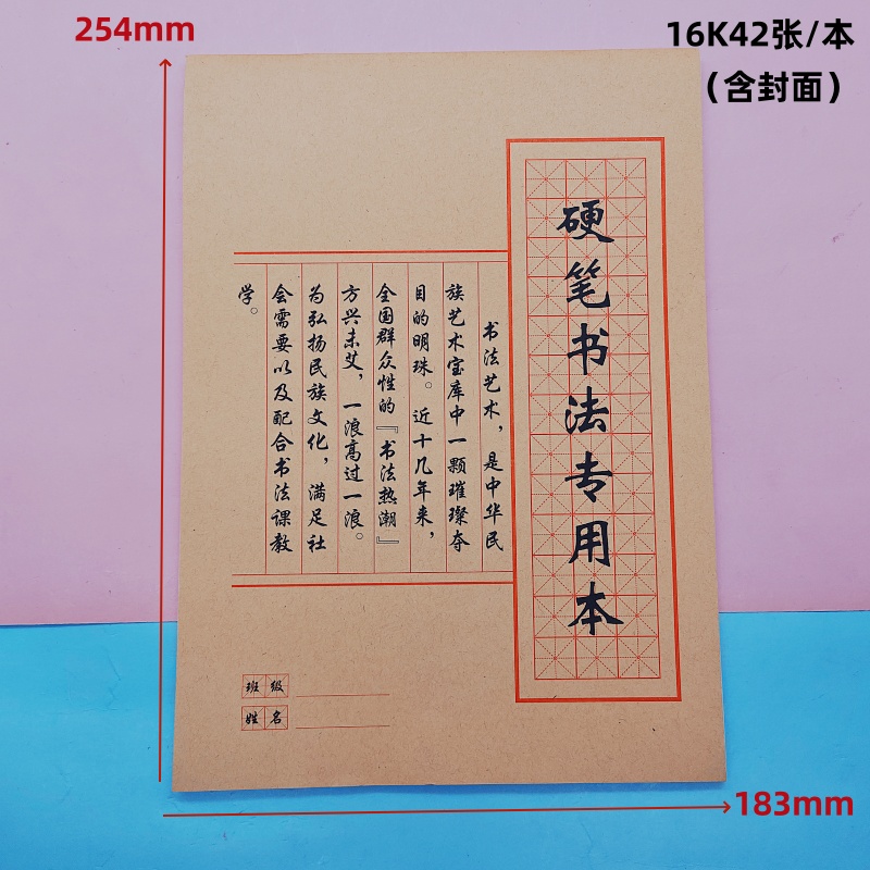 弘都16K牛皮硬笔书法专用本 学生骑马钉加厚40张上翻米字格作业本