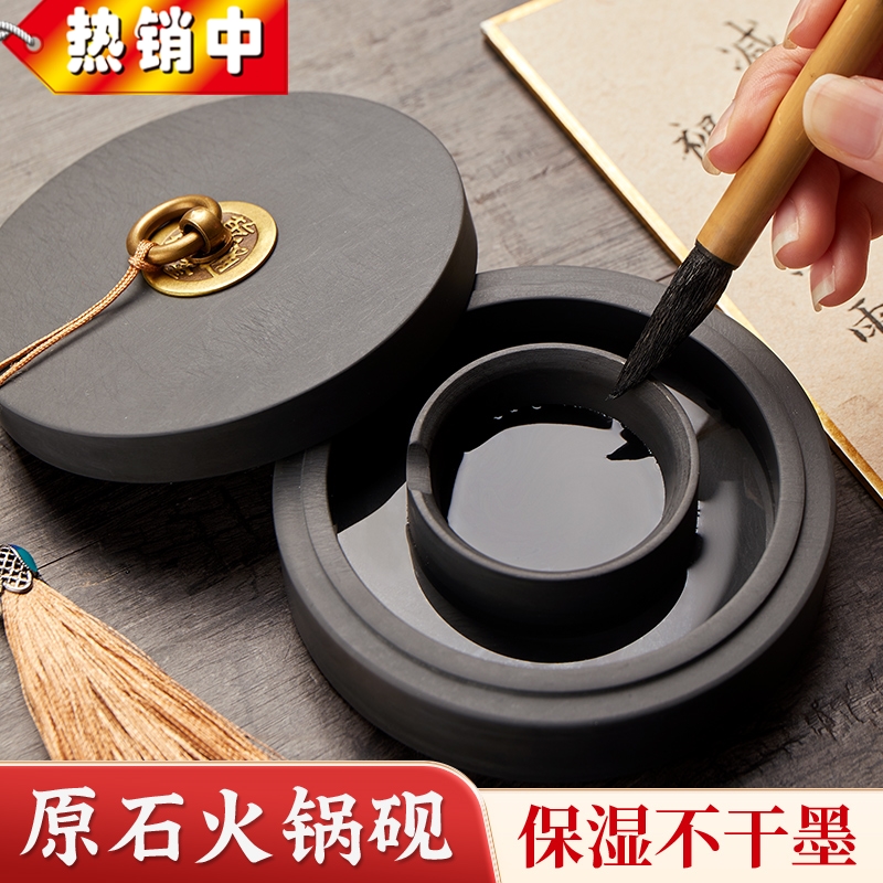 毛笔墨汁砚台火锅砚台书法专用多功能带盖防蒸发不干墨初学者墨盒