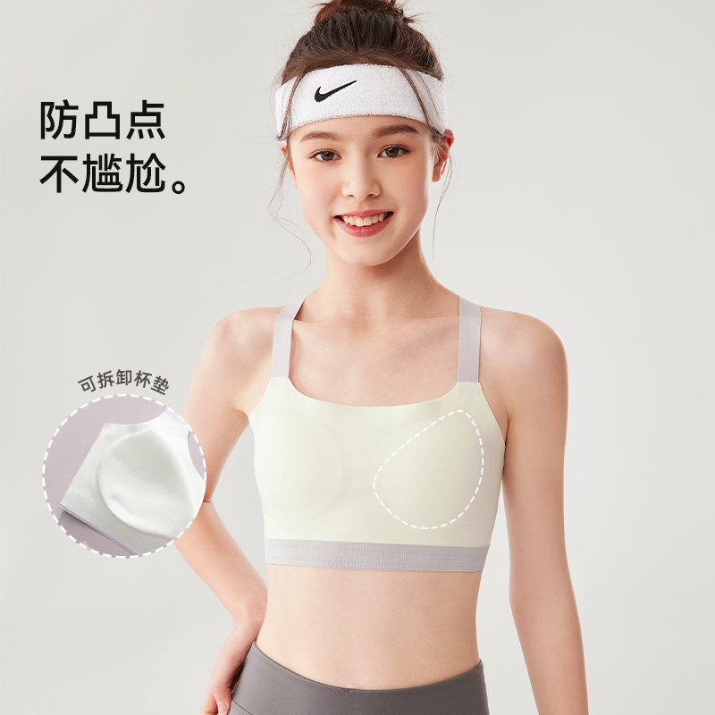 猫人儿童女童背心二三阶发育期宽肩带无痕裸感少女文胸发育内衣