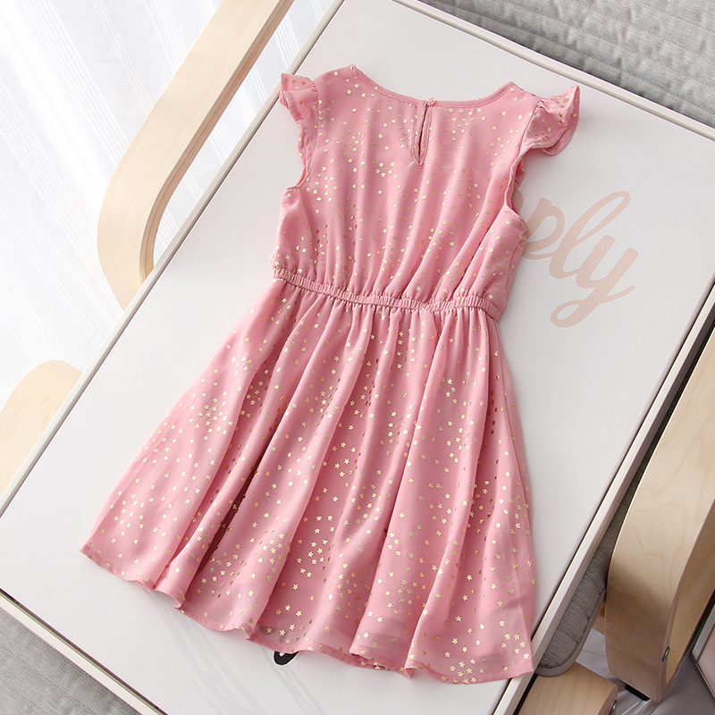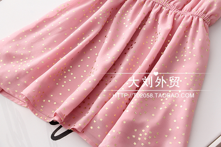 【童】【外网很贵】夏儿童洋气粉色连衣裙薄款女孩纱裙子中长款裙