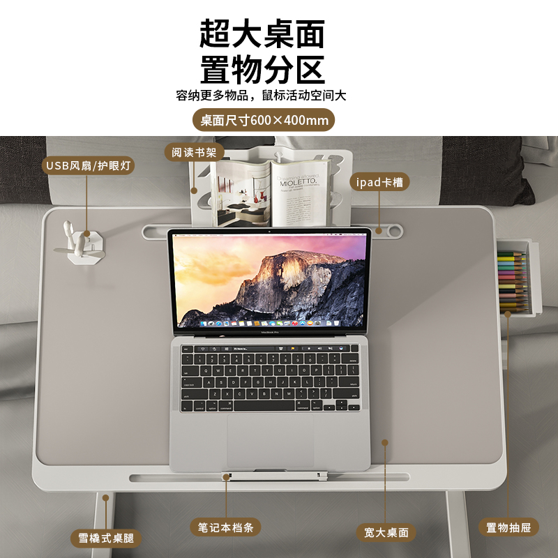 可折叠升降床上小桌子学习桌书桌简约家用卧室办公飘窗桌板宿舍学生笔记本电脑懒人桌支架儿童小书桌绘本桌