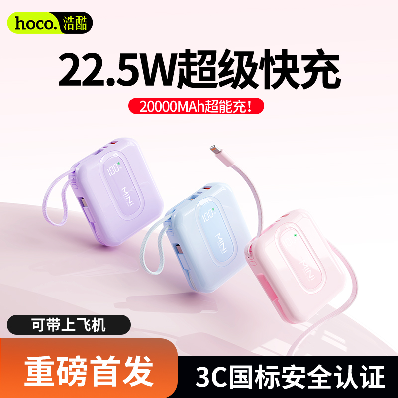 以旧换新| 3C认证充电宝丨品胜2025新款20000毫安大容量22.5W超级快充便携自带双线移动电源适用苹果可上飞机