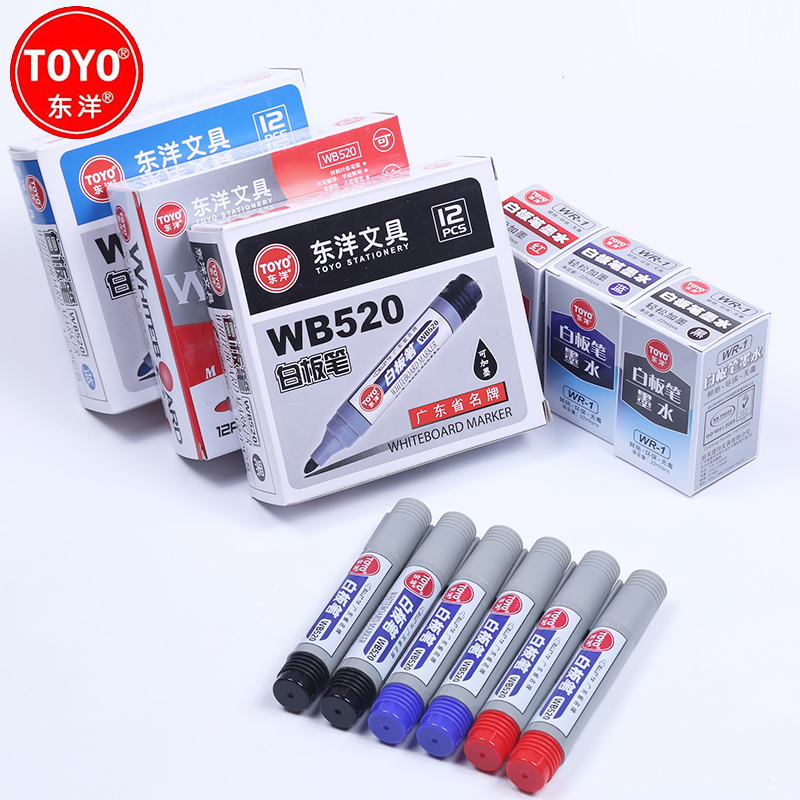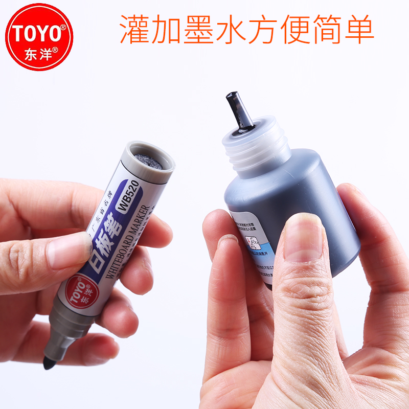 TOYO东洋WB-520可添加水白板笔可擦水性白板笔添加墨水重复使用办公会议演讲玻璃板快干粗头标记笔易擦白板笔