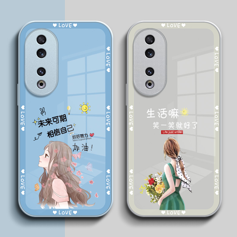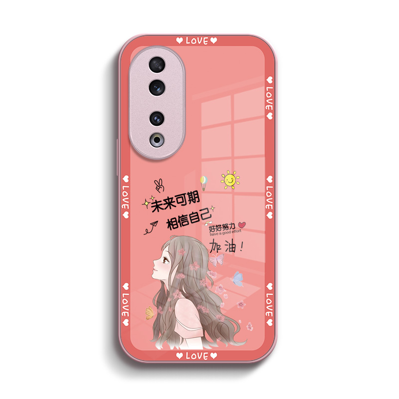 适用荣耀90pro手机壳REP-AN00玻璃壳HONOR9opro女款Honro90pro硬壳化为荣誉90pr0保护套钢化玻璃壳奢华高级感