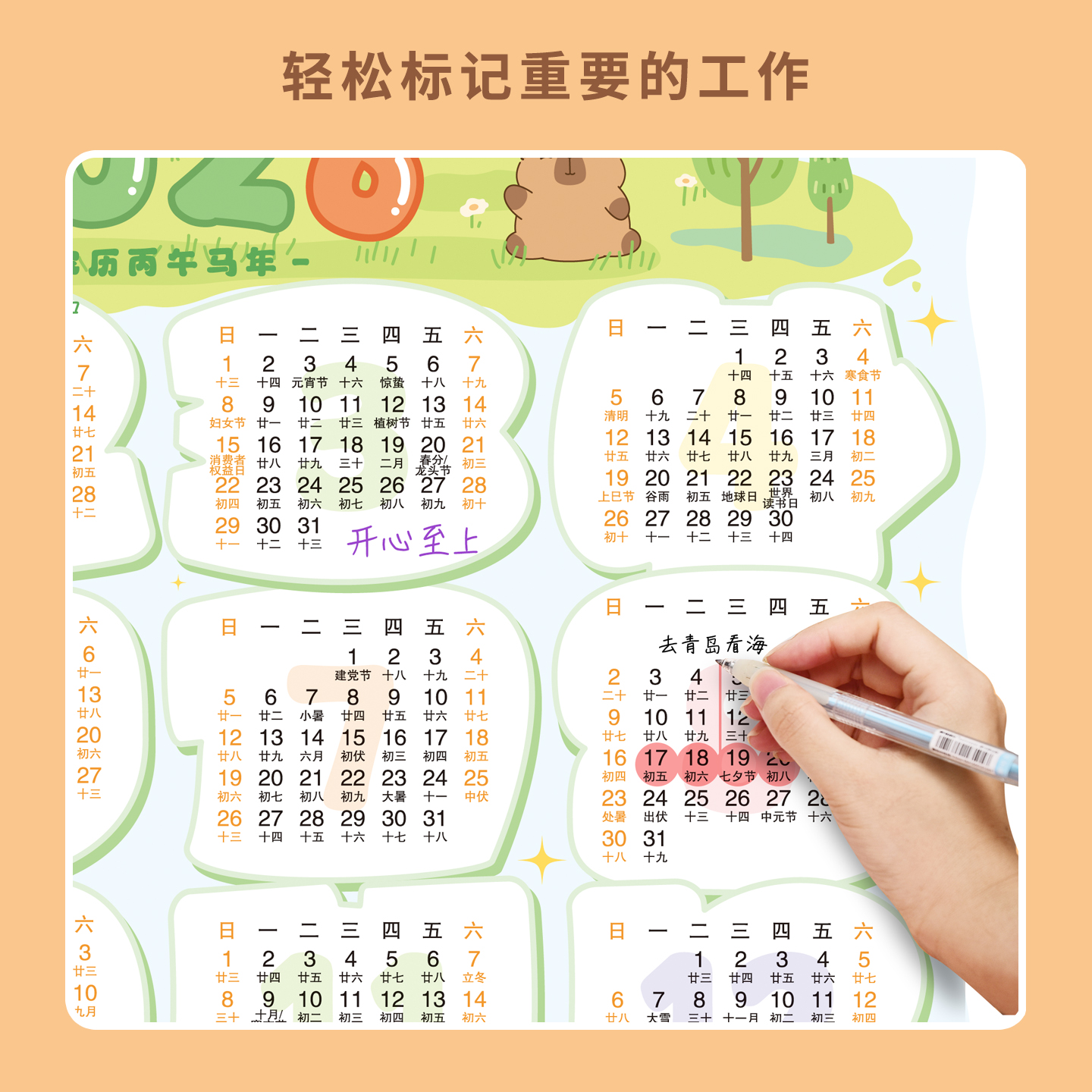 2026年日历全年一张纸新款桌面备忘计划表A4年历月历挂历日程B5记事表高颜值办公小学生用365天台历纸学习卡
