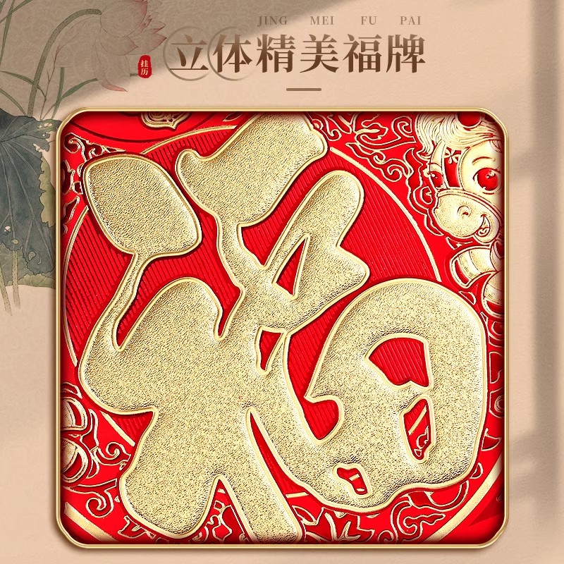 2026年挂历老式正六开福字吊牌马年新年创意中国风家用大号挂墙式手撕日历一月一张记事月历公司广告定制定做