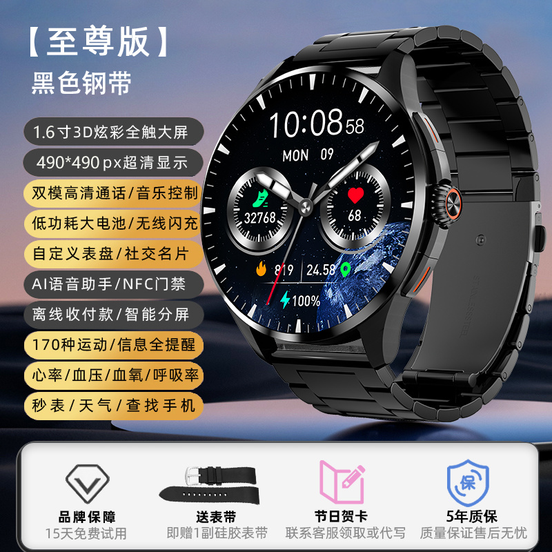 【2025新款官方正品】智能手表华强北watch可接打电话多功能成人测心率血压听歌通话NFC蓝牙运动手环防水男女