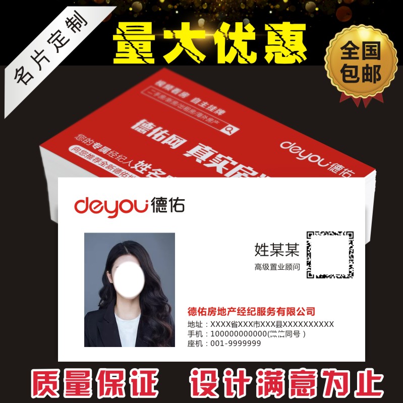 新版德佑名片房产中介德佑房产名片个人名片德佑房地产免费设计