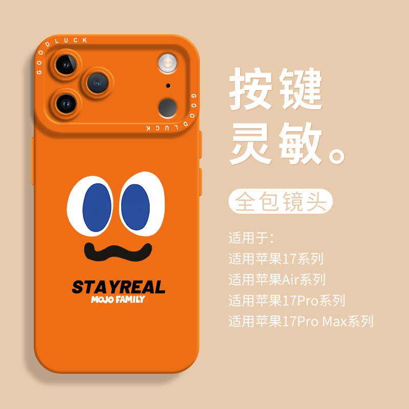 创意卜卜适用iPhone17手机壳苹果17promax液态苹果air全包瞳眼硅胶壳17pro保护套ip17带挂绳17卡通网红