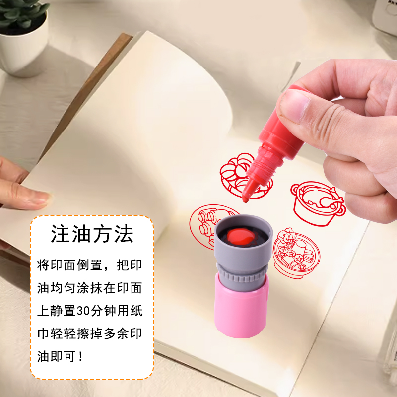 卡通美食手账印章定制红烧肉淀粉肠烤苕皮食物排骨面夜市小吃定制鸡汤烤鸡糖醋排骨菜单章光敏圆章清晰印章