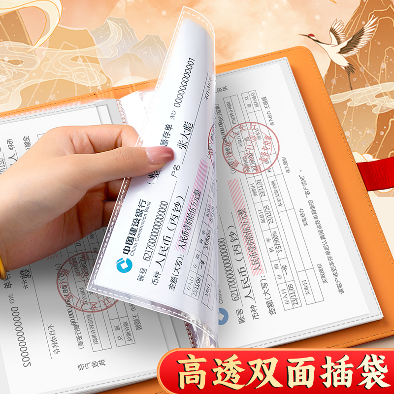 存折存单收纳本银行定期存单专用夹存单本2025年新款票据支票存单夹家用高颜值中国风多功能防水收纳册神器