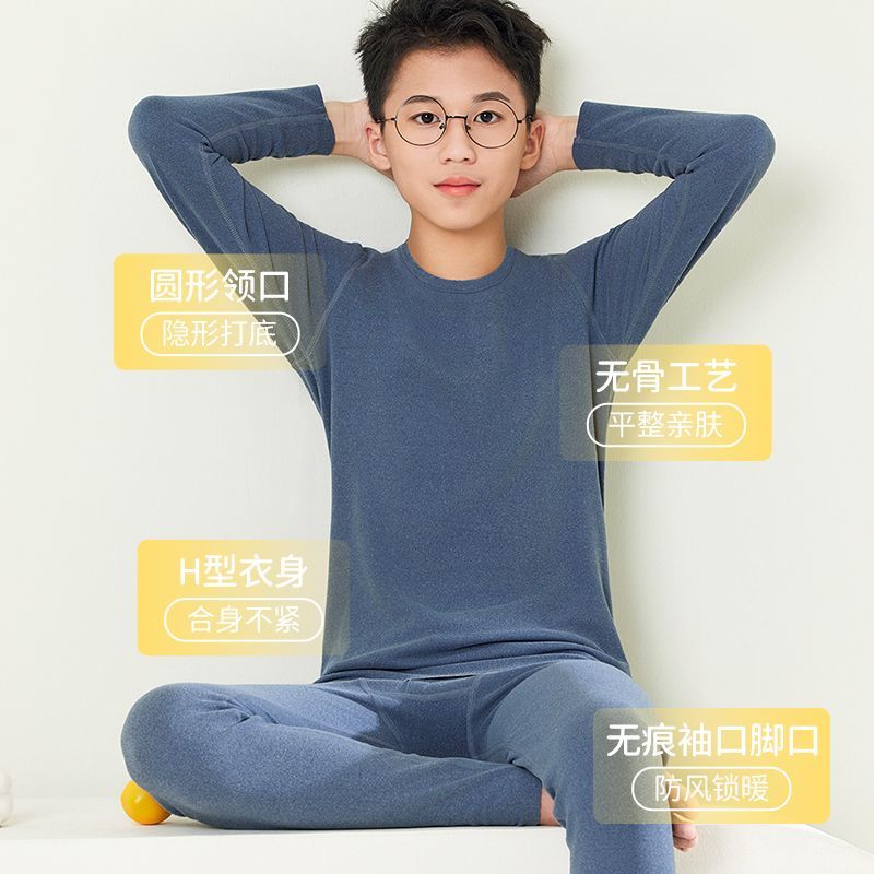 雅鹿青少年羊毛蚕丝秋衣秋裤套装男大童初中高中学生保暖内衣冬季