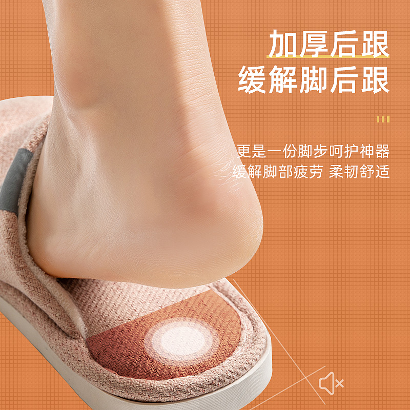回力居家棉麻春秋棉拖鞋女四季亚麻家用防滑室内静音凉布拖鞋男冬