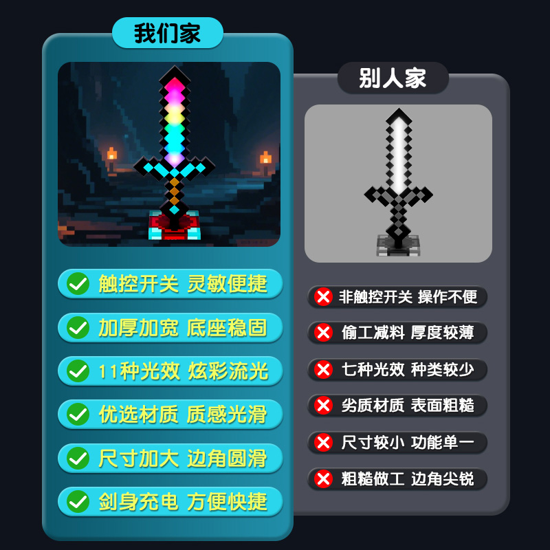 我的世界钻石剑像素光剑MC宝剑周边儿童发光玩具武器男孩子火把灯