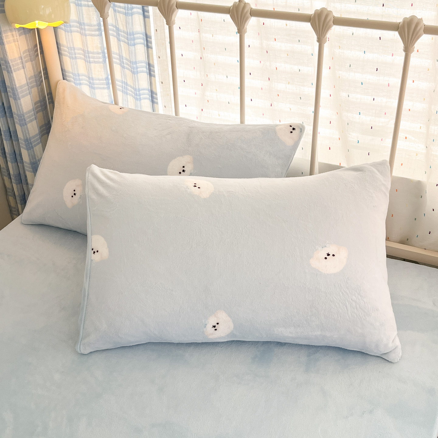 TeenieWeenie小熊牛奶绒四件套美拉德风珊瑚绒被套加绒床单三件套