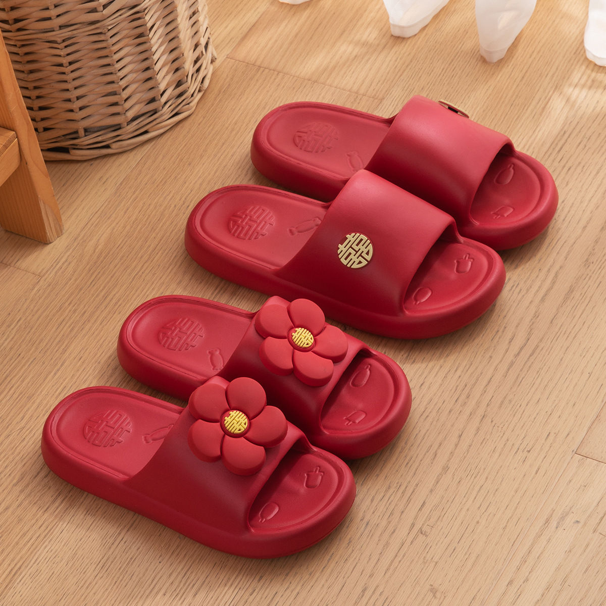 夏季拖鞋结婚喜庆红色一对情侣婚庆婚礼陪嫁室内防滑轻便浴室凉