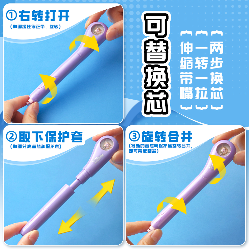晨光笔式修正带可换替芯小学生专用涂改修正贴改正带替换芯顺滑静音大容量初中生高颜值ins风女生黑科技