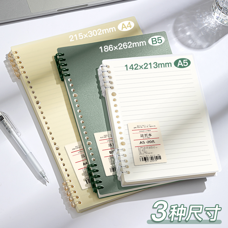 晨光活页本B5横线笔记本子A4方格网格记录本A5多规格可拆卸替芯软壳考研线圈错题本加厚纸张不咯手活页夹高中
