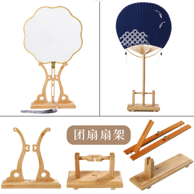 中式扇架折扇团扇摆放落地扇托展示架扇子底座漆扇配套实木可拆卸竹宫扇架底座折扇架圆扇子底座摆台包邮