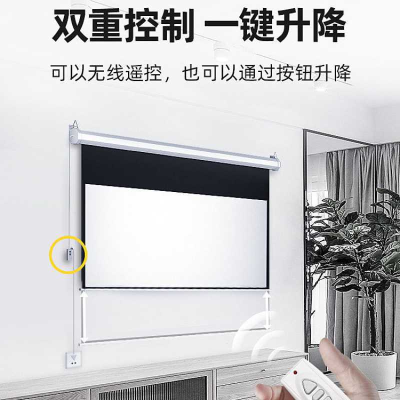 投影幕布电动幕家用超清抗光100寸壁挂幕布自动升降电动遥控幕布